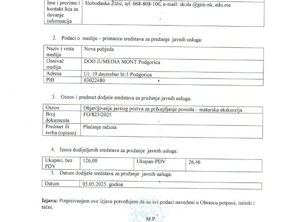 PDF link: Obrazac o podacima o iznosu finansijskuh sredstava dodijeljenih mediju -