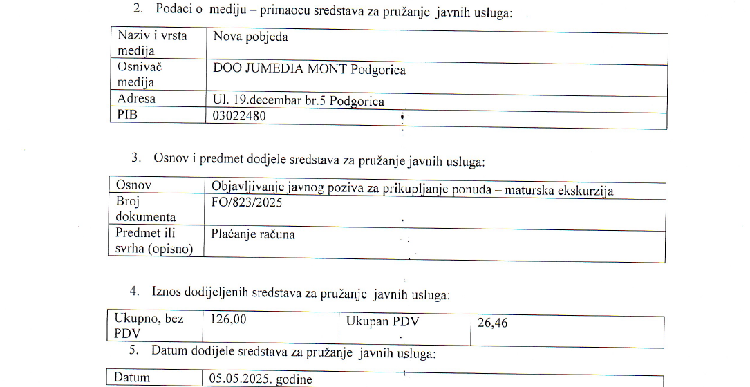 27/03/2026 Obrazac o podacima o iznosu finansijskuh sredstava dodijeljenih mediju Dokumenta gimnazijank 0 Comments PDF link: Obrazac o podacima o iznosu finansijskuh sredstava dodijeljenih mediju […] Read more