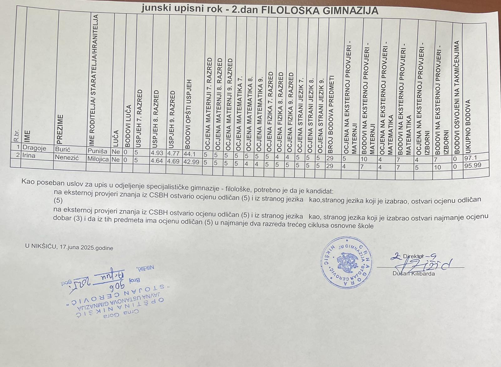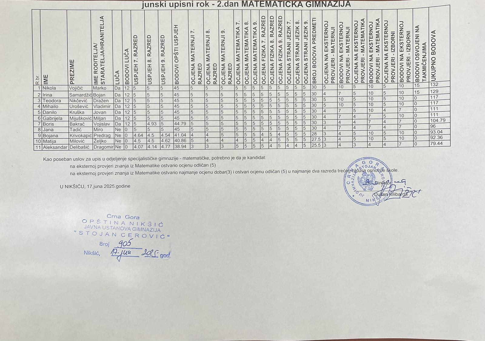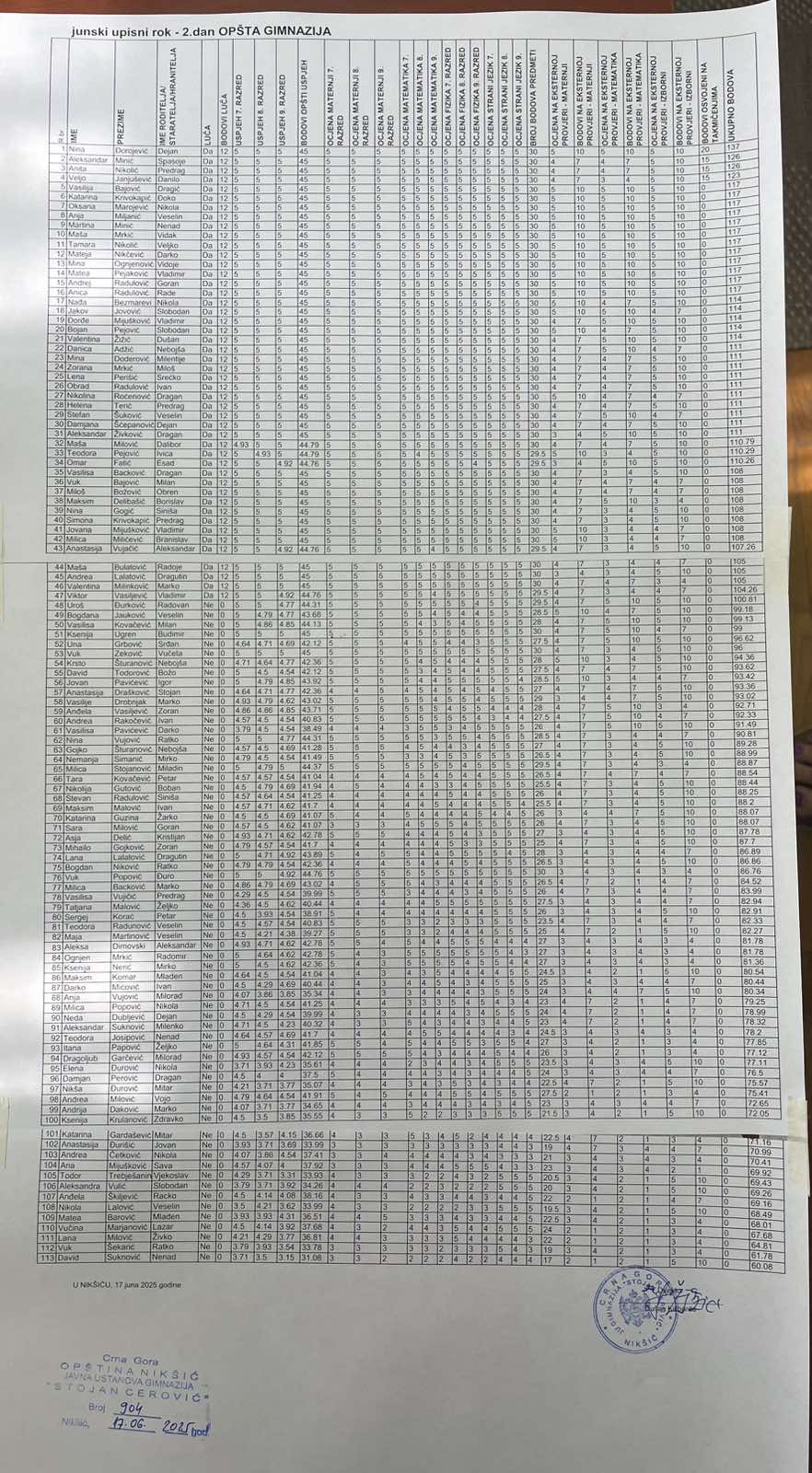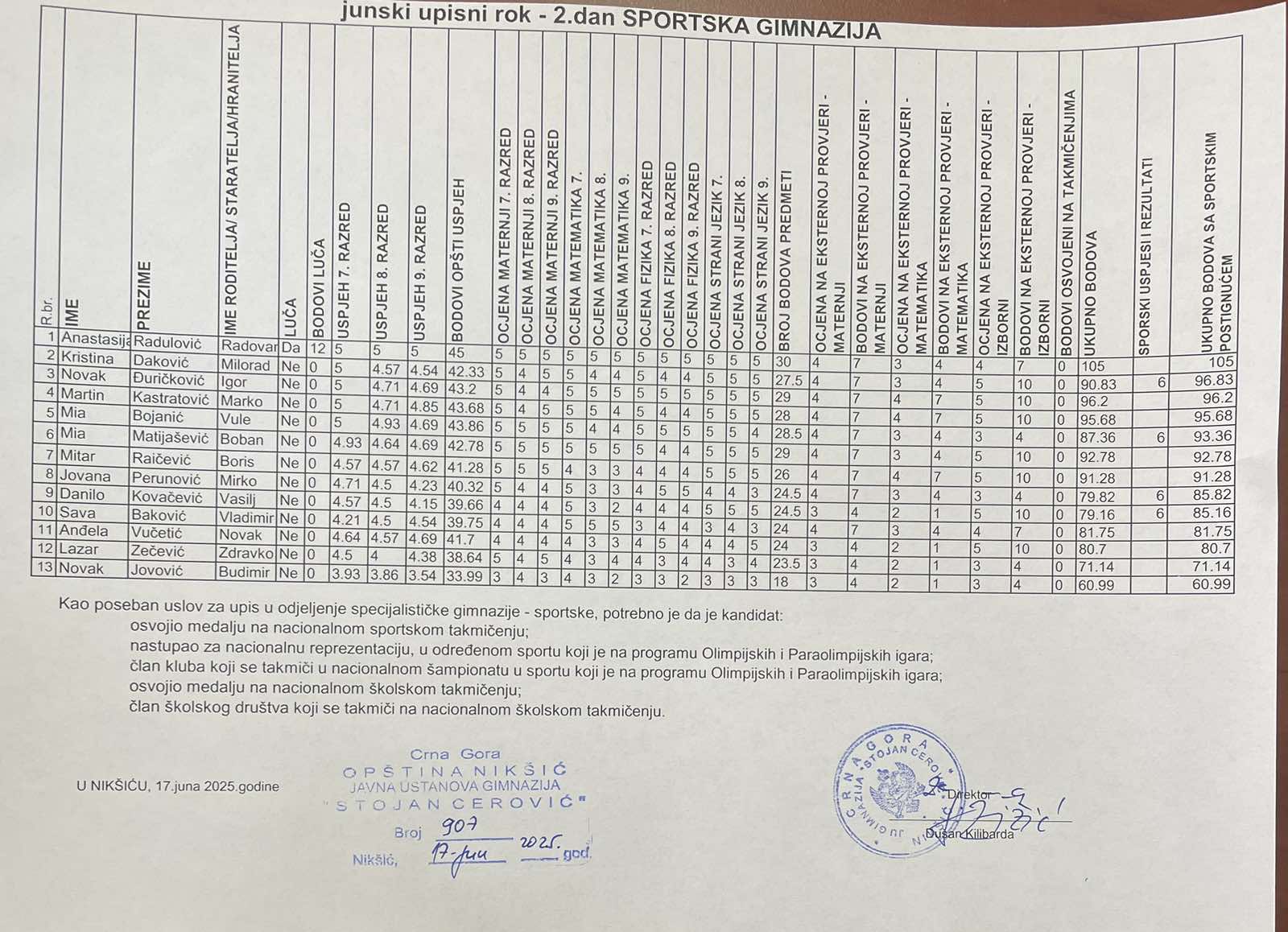 Nakon objavljivanja konačne rang liste slijedi zvanični upis i završetak administracije.